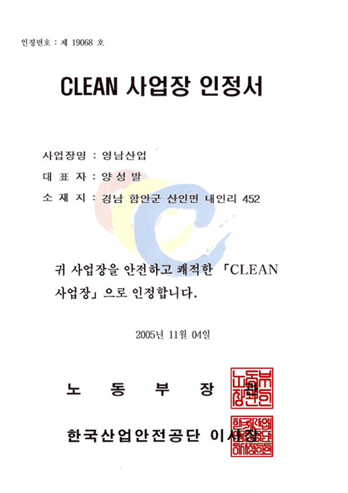 CLEAN事業場認定書